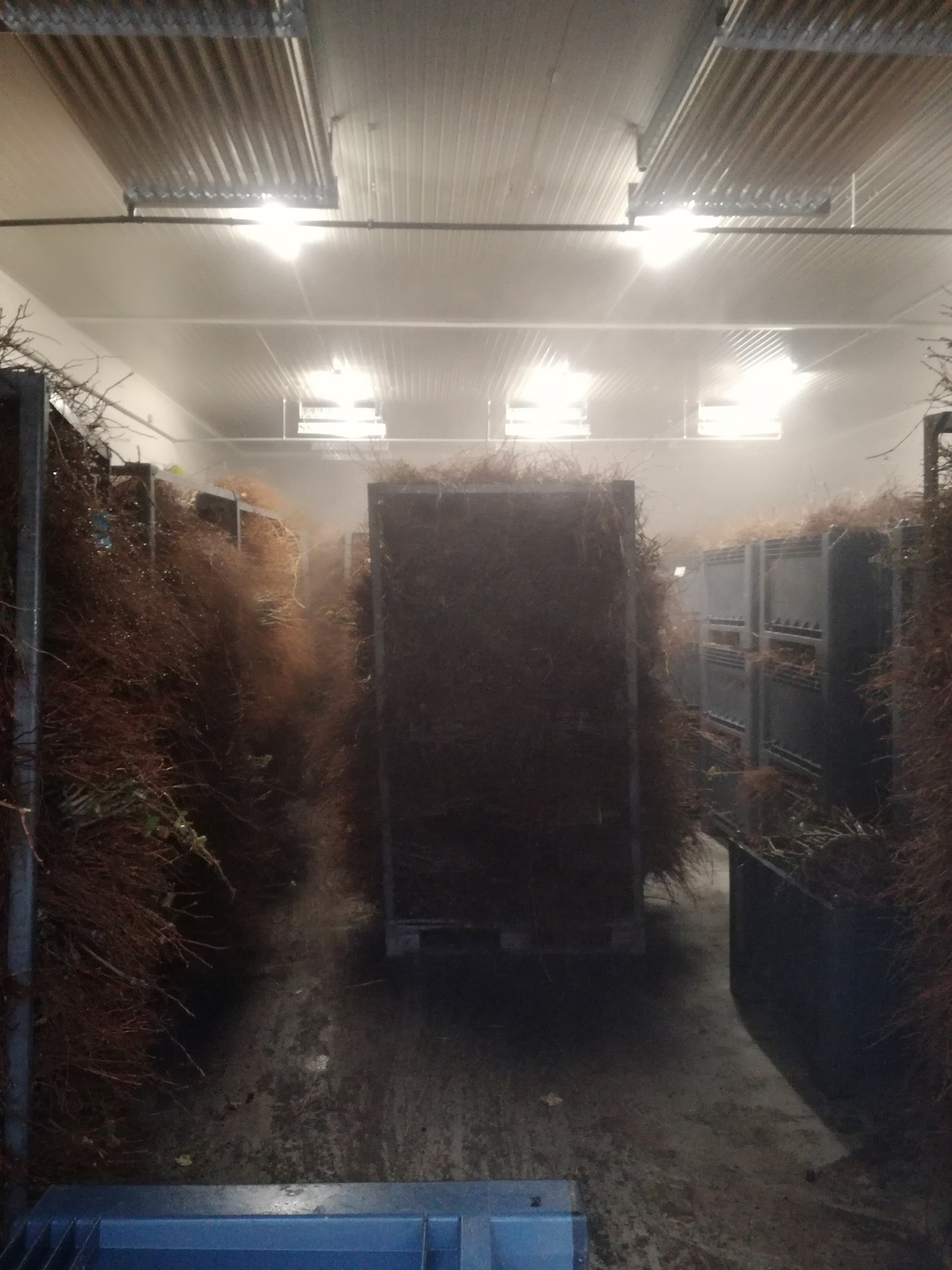 The inoculated grafts are stored in a plastic container as soon as possible after vaccination in a refrigerator at a temperature of 2-4 °C and a humidity of 95%, prior to the start of the grafting.